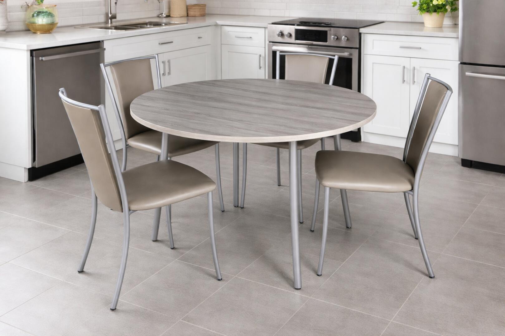 Stół nie rozkładany (120cm średnica) + 4 skórzane, wygodne krzesła.
