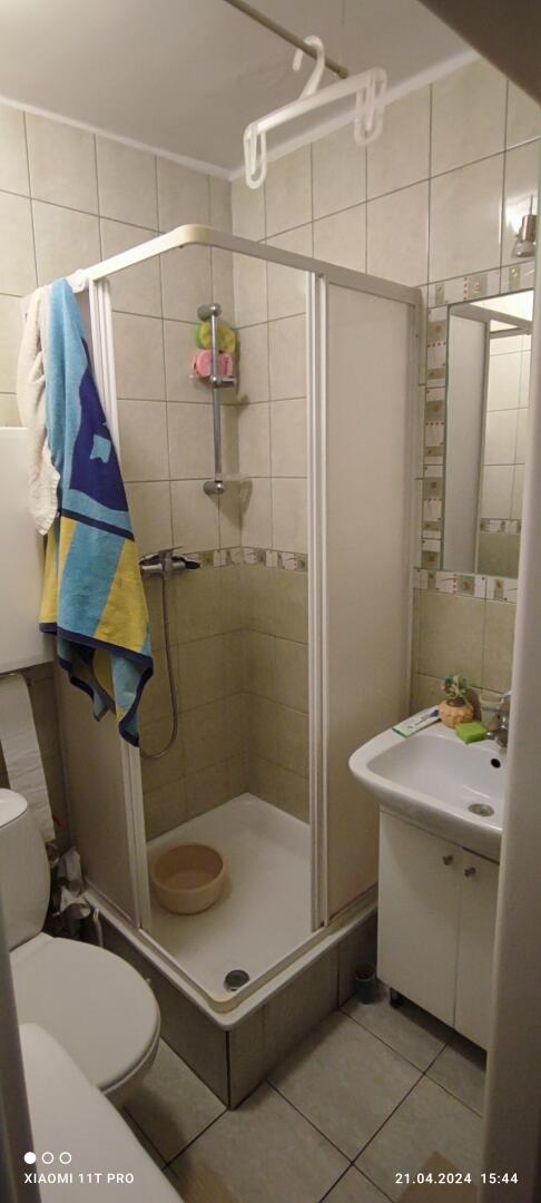 Mieszkanie składa się z przedpokoju, łazienki /wc prysznic pralka umywalka/, pokoju połączonego z aneksem kuchennym oraz oddzielną sypialnią.