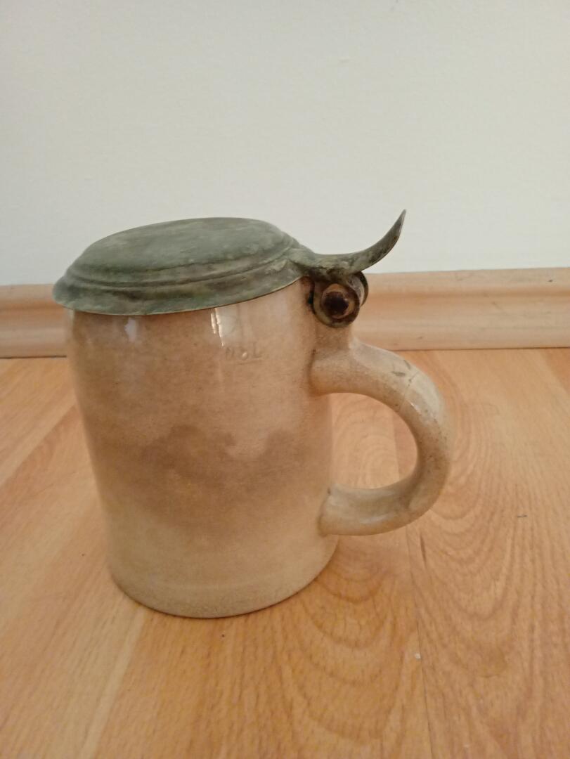 Sprzedam kufel do piwa z mosiężną przykrywką prawdopodobnie niemiecki